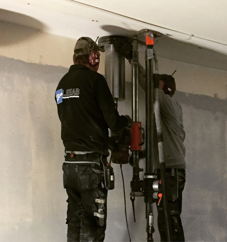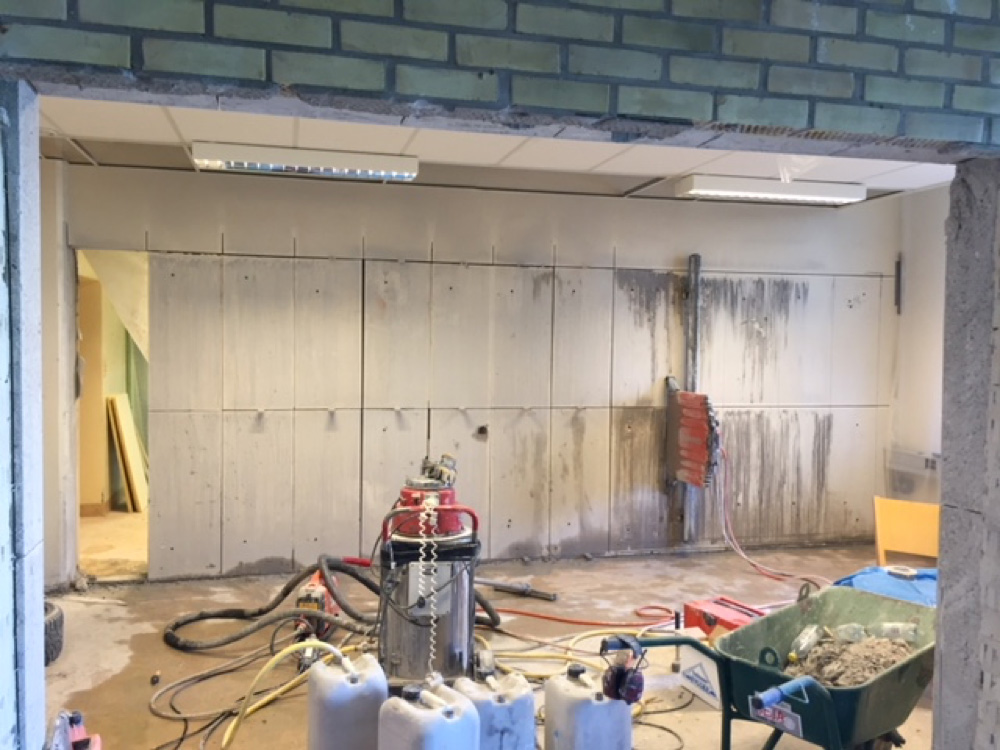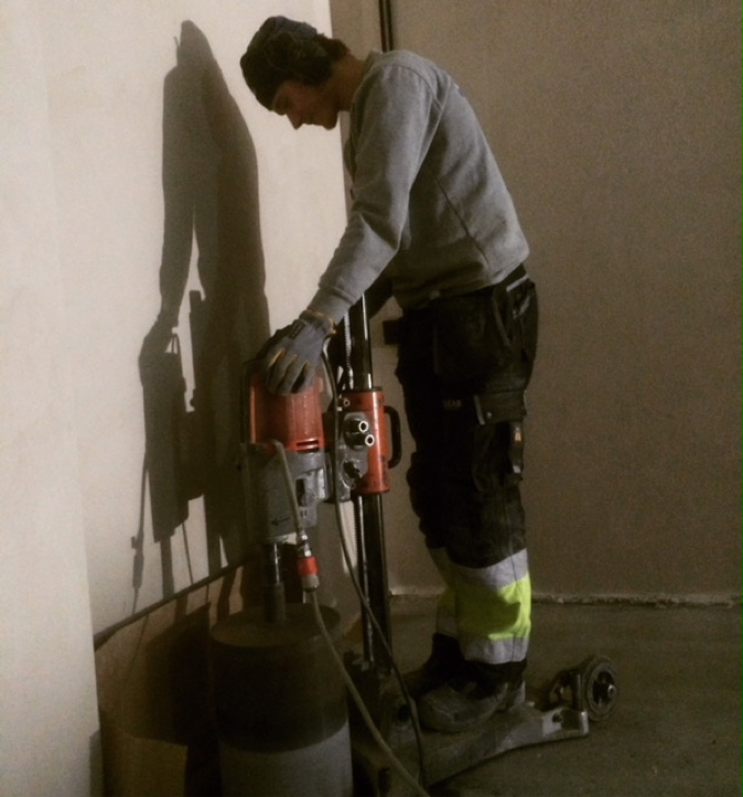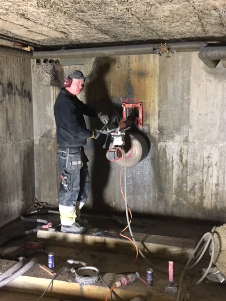 Sågning för nya avlopp samt rivning och sågning av vägg på Hedda Wisingskolan. Borrning för ventilation.